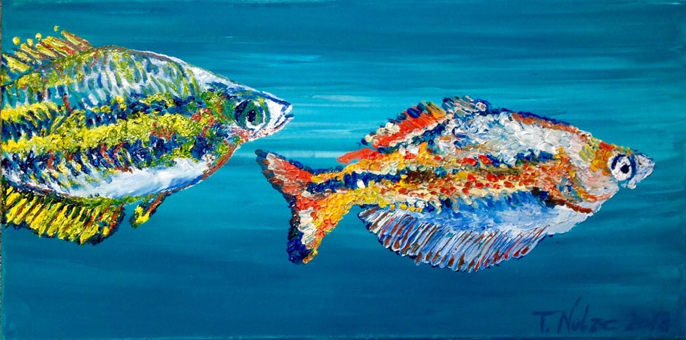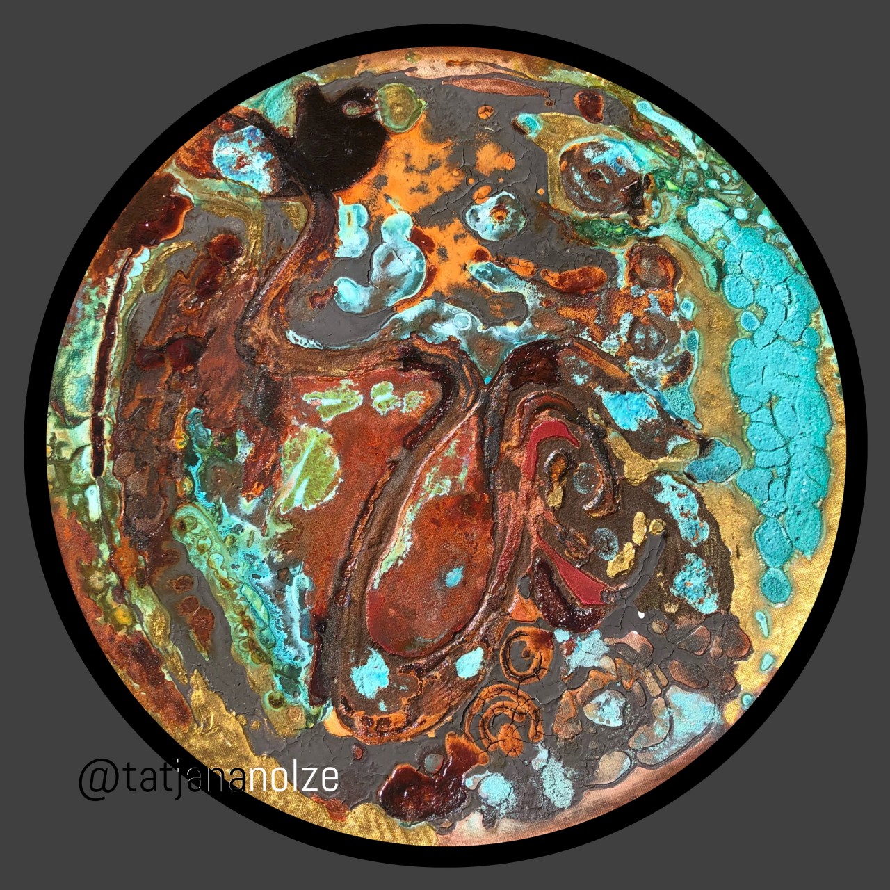 Auch bei dieser Kollektion setzt ich als Künstlerin die Ölfarben mit möglichst hoher Farbbrillanz ein. Ebenso kommt auch häufiger Strukturmaterial zum Einsatz. Besonders wichtig sind für mich sowohl Ausdruck als auch Lebendigkeit.